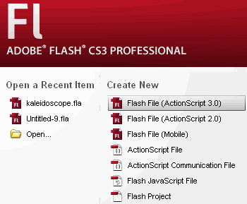 [1] Open Flash and create a new Flash File (ActionScript 3.0)
