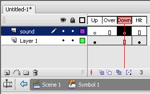 [6] It’s time to put the sound file on the stage. Select the Sound layer and on Down