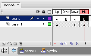 [5] Select Layer 1 and on Down layer insert a frame and a keyframe for the Hit Layer