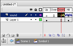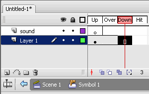 [6] It’s time to put the sound file on the stage. Select the Sound layer and on Down